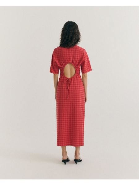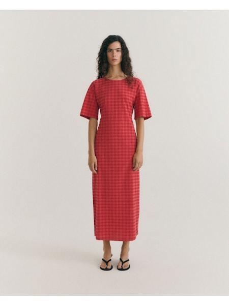 RED CHECKS SEERSUCKER KINA DRESS